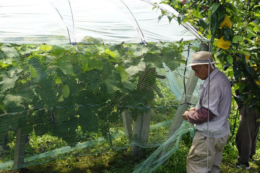 此外,该基地还种植了富有甜柿、“葡萄中的爱马仕”——阳光玫瑰、苹果等水果。放眼望去,农人们正为柿子套上袋子、葡萄安装上防护网等,为今年丰产丰收打下基础。