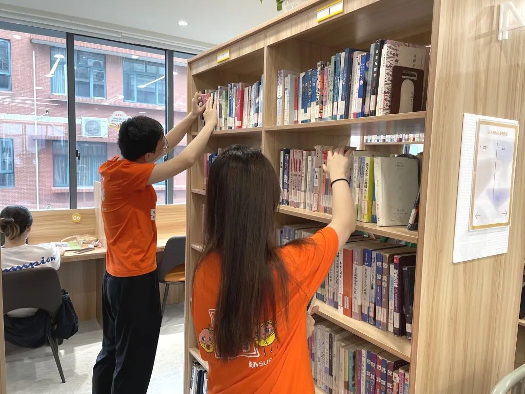 在这个暑假,来自上海电力大学和上实剑桥中学的学生们纷纷云集于此。他们作为志愿者参与文明实践,帮助工作人员整理书籍;他们为老人儿童提供点滴帮助、彰显青年担当;他们在工作之余,也会翻阅书本、思考探索。这些志愿者学生为图书馆注入新鲜活力,成为一道亮丽的风景。