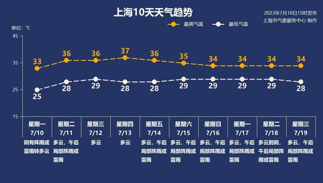 预计未来十天都是高温天气,极端最高气温37℃左右,不过午后多局地雷阵雨。大家一定要注意防暑降温!