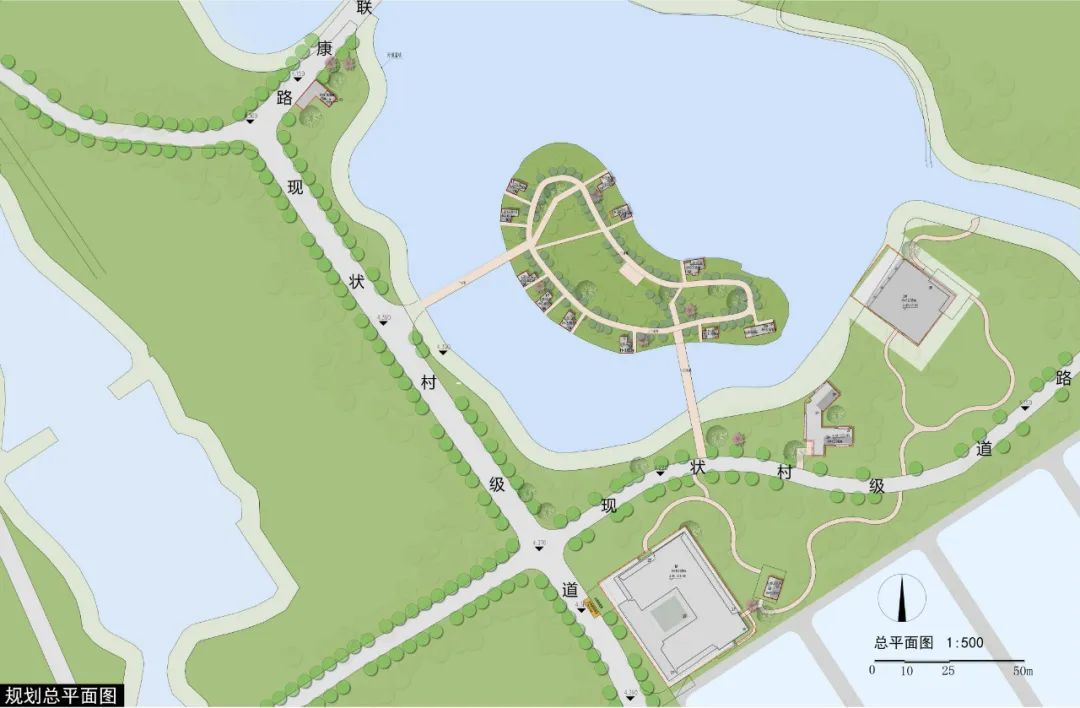 乡悦华亭26-41号地块项目,基地所属规划区位于上海市嘉定区,内部地势平坦。26-41号地块位于湖心岛及周边区域,有现状道路经过。