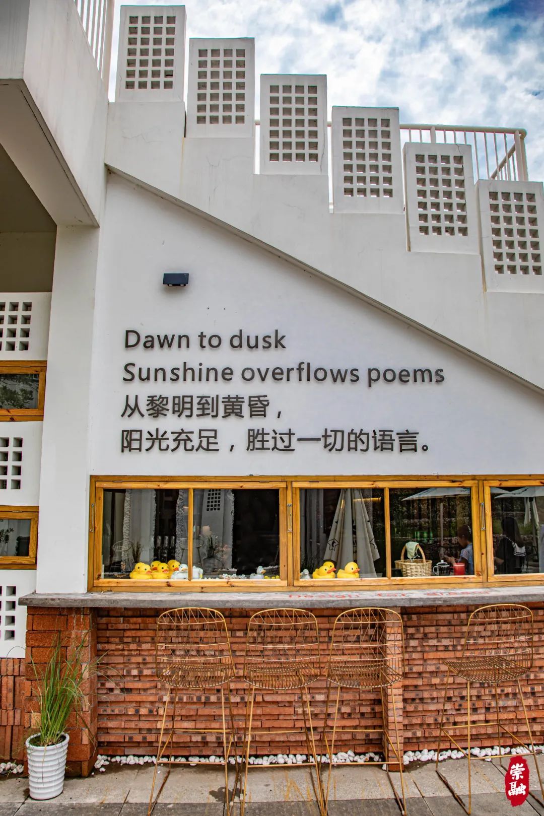 JAVASA咖啡和生活艺术馆负责人徐赐阳介绍,该艺术馆的标志也蕴藏着不少含义,它由三个部分组成,分别代表着崇明三岛。鸭子的身体部分像一颗咖啡豆,意为在这里,你能喝到好喝的咖啡;鸭子身体中间那条曲线代表着长江,而“鸭窝沙”正好就处在长江入海口。