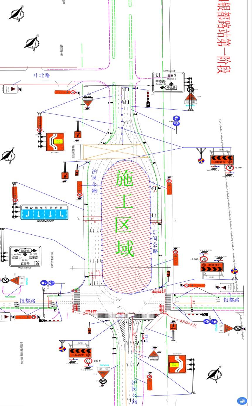 上午8点,记者来到沪闵路银都路路口,马路正中央已被围栏围起,朝春申路方向留出两车道,另一侧则留出四车道供机动车通行。施工路段长约250米,来往车辆从施工区域两侧绕行,到靠近沪闵路申北路路口处再汇入干道。