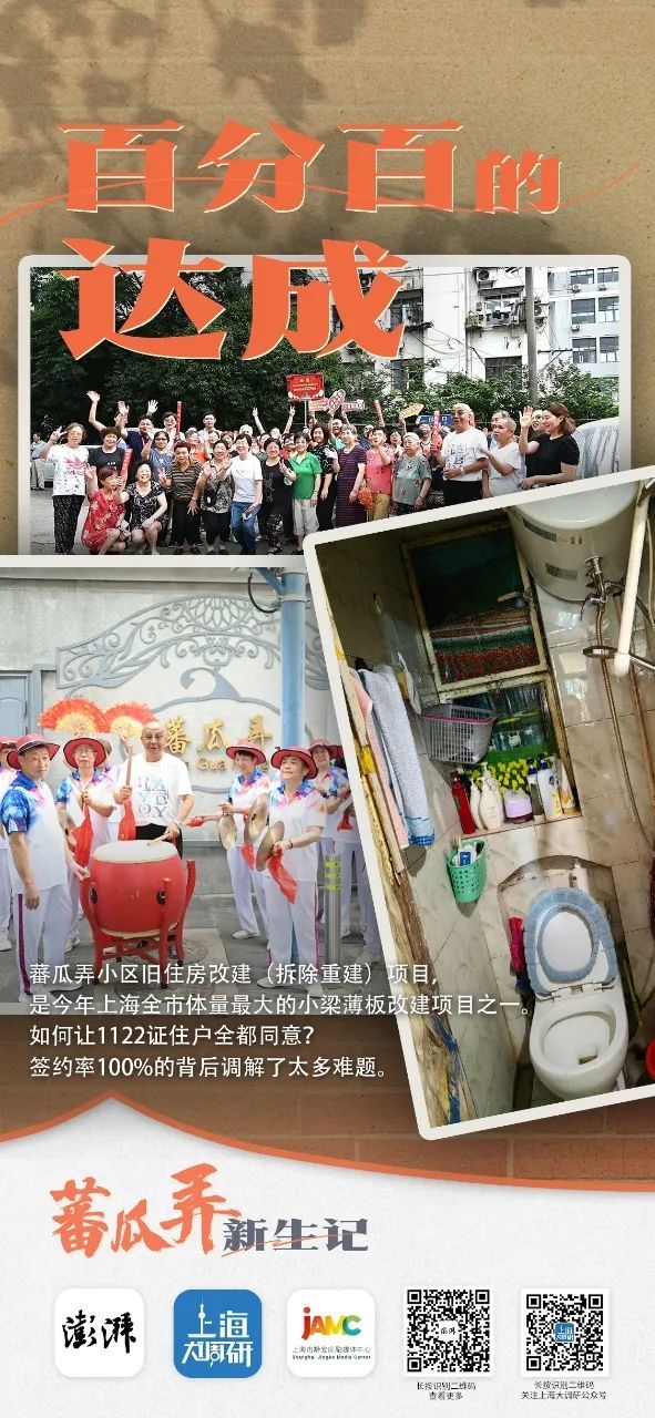 作为今年上海市体量最大的小梁薄板改建项目之一,蕃瓜弄小区旧住房改建(拆除重建)项目共涉及居民住户1122证。