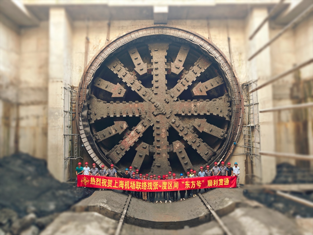 7月17日,由上海申铁负责投资建设,中交隧道局承建的机场联络线8标迎来建设新进展,14米级超大盾构机“东方号”在度假区站顺利完成接收,继今年4月“明珠号”盾构机顺利接收后,8标两台超大盾构机已全部完成接收工作,标志着5#风井至度假区站隧道区间全部顺利贯通。