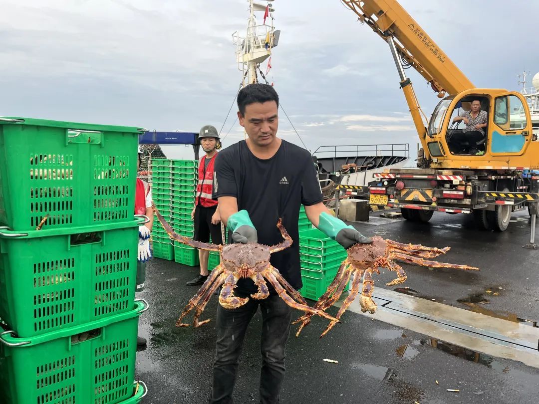 近日,又有84吨鲜活帝王蟹到达长兴横沙渔港码头。截至6月底,长兴横沙渔港码头今年已接靠外籍渔船24艘次,超过2021年、2022年两年的总和。