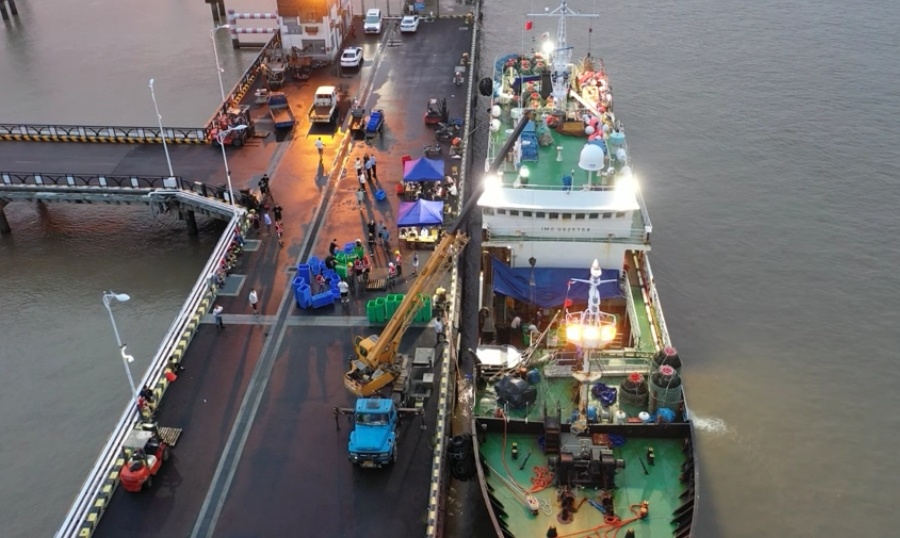 “我们开通了海上水产品入境的‘绿色通道’,让代理公司提前申报,然后实现船舶‘随到随办’,船到港后第一时间完成各项边检手续的办理。”崇明出入境边防检查站办公室科长涂强镪告诉记者。边检手续的快速办理为鲜活水产争取了更多时间,最大限度保障即到即卸,第一时间将美味送上市民餐桌。