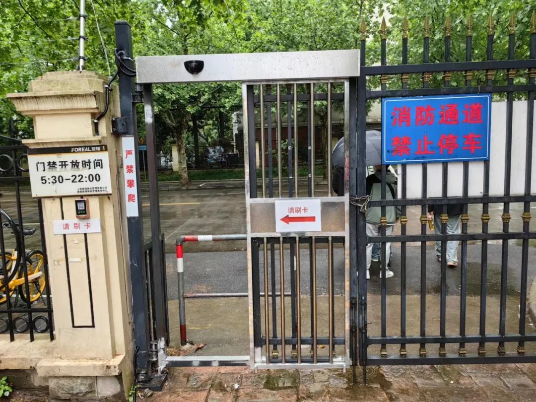 这道消防门位于小区东侧,直通真金路,邻近真华菜市场。考虑到居民出行、小区安全等因素,最初在大门一侧设置了“L”型进出口。由于铁铸大门自重较大,老年人和小孩进出时推门比较难。