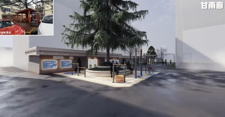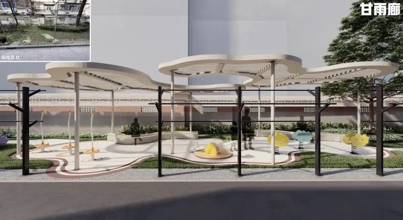此次精品小区改造,沈北小区将对休闲点进行重新改造,同时开辟相连的绿化带,打造一个集活动广场与社区会客厅于一体的“甘雨廊”。其中,活动广场将拆除凉亭,打造一个环雪松而建的休闲区,周边增设丰富的健身设施;社区会客厅则包含了健身步道、儿童游乐设施、休闲座椅,成为老少居民娱乐休憩的好去处。