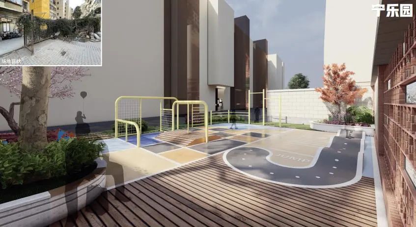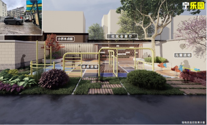 另一边的沈南小区,同样将对现有的“睦邻园”活动场地进行翻新再利用。一方面调整生活垃圾房、大件垃圾堆放点的位置,营造通透清爽的视觉效果;另一方面增添健身器材、滑板滑道等娱乐设施,把原先老旧的广场变成居民喜闻乐见的邻里会客厅——“宁乐园”。