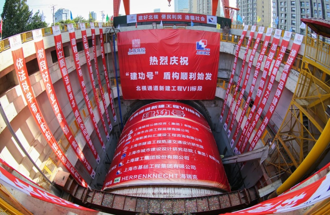 项目建成通车后,不仅将成为虹桥枢纽到浦东新区的快速新通道,服务北部重点地区的中长距离到发交通。届时,市民从杨浦开车到虹桥机场,在不堵车情况下只需要30分钟车程,比以往走内环大大节约了时间。更重要的是,北横通道新建工程将改变许多市民的出行方式,影响长三角区域城际交通网络格局。2021年,参与北横通道东段建设的两台超大盾构——“建功号”和“纵横号”分别从福建路工作井、黄兴路工作井始发推进,相向而行,于2022年又分别完成梧州路工作井、杨树浦港工作井过站后二次始发,分别于今年7月和6月在安国路井进洞,结束光荣使命,告别“迈开大步向前走”的不凡历程,北横通道东段也开启了隧道内部结构施工阶段。北横通道东段建设较为特殊,要攻克穿越中心城区、建筑体量大、地下管线密集复杂、环保要求高等难点。其中,北横通道新建工程Ⅶ标西起虹口区海宁路晋元路西侧,东至周家嘴路大连路东侧,线路位于海宁路、周家嘴路主干道下方,盾构区间全长2826米。建设中首次高难度穿越施工是2022年1月“建功号”盾构成功穿越轨道交通10号线。此次盾构穿越长度为38米,与运营中的10号线上、下行线竖向间距仅为8.1米和7.5米。除了距离近,复杂的土层情况也是本次穿越的重难点之一,盾构姿态、沉降控制不能有任何偏差。而且东段地下土层是砂质粉土层和粉质黏土,分布不均匀,自立性差、含水量丰富,这又提高了施工难度。之后,“建功号”还经历了多次高难度穿越,包括穿越虹口港桥、新建路隧道等。在穿越施工过程中,建设团队模拟多种情景,聘请专家团队并制定穿越方案,做好详细预案,并逐一展开对比验证,以确定最佳施工方案。