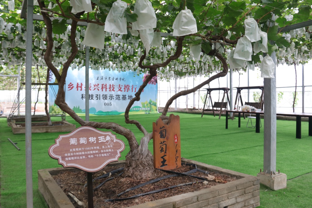 “41年陈”的葡萄你吃过吗?嘉定区华亭镇的文兴葡萄园艺场里有一棵1982年种植的老树,是整个园子里的葡萄“老祖”。今夏它依旧果挂枝头香满园,是当之无愧的镇园之宝。