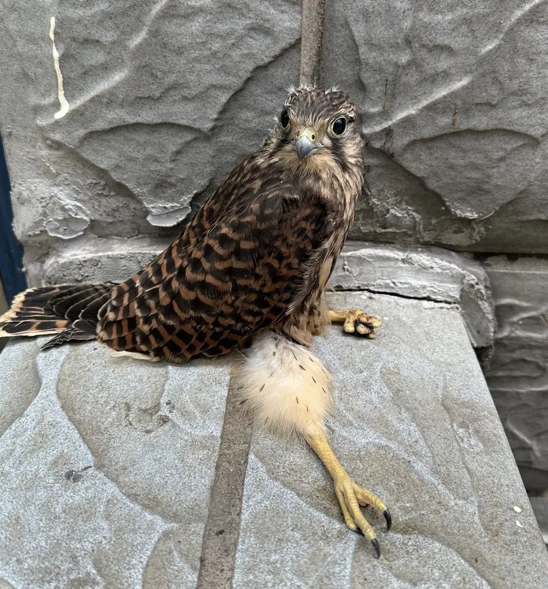 经过林业部门工作人员辨别,这只“呆萌”的鸟儿是国家二级野生保护动物——红隼。目前,该红隼已由林业部门带回救治。