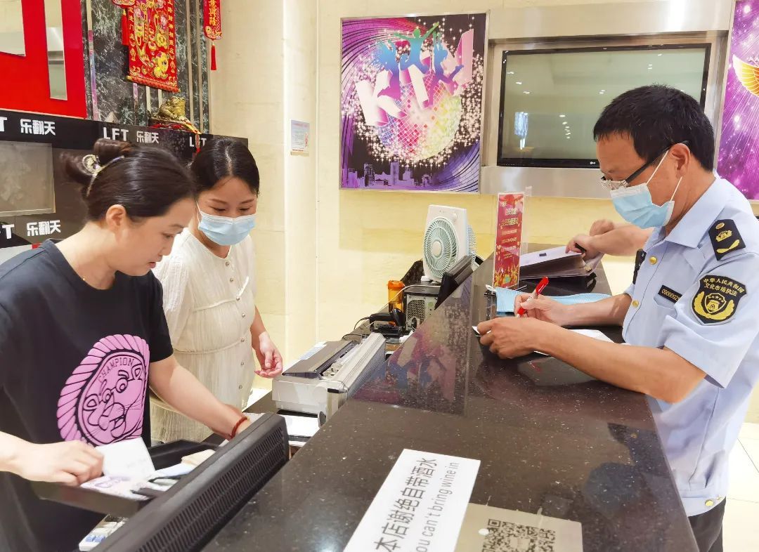 联合检查人员先后来到位于大场镇聚丰园路的乐翻天量贩式KTV、网鱼网咖和位于高境镇殷高西路的网鱼电竞酒店,该类场所对于未成年人的进入都有禁入或限入的法定限制。联合检查人员对于场所涉未成年人违规行为进行重点检查,包括商家违规接纳未成年人、未在场所入口显眼位置贴明“未成年人禁入”标识、播放违禁歌曲、室内控烟情况以及消防安全等事项。在网鱼网咖和网鱼电竞酒店,联合检查人员重点检查了店内顾客的身份证件,严格核验身份信息,同时查看电脑后台的实名登记录入信息是否跟本人对应,防止有未成年人进入场所内消费。对于检查中发现的问题,相关部门现场依法依规予以处置,并对商家加以严格要求。