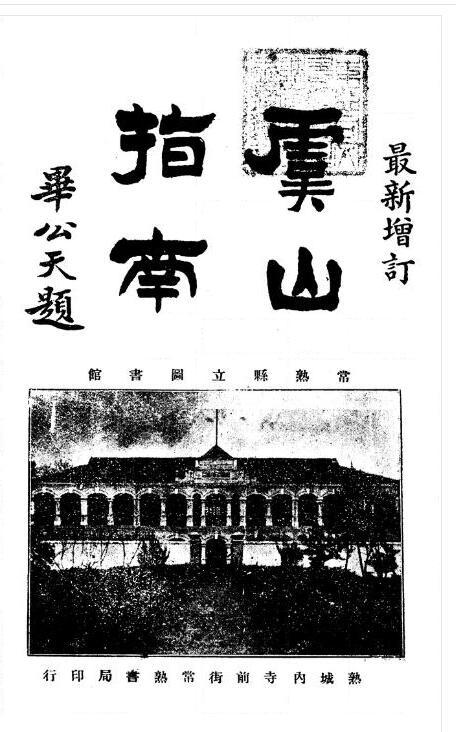 江南文化名城常熟,从明清时代就享有极高的知名度,吸引了文人前去踏勘寻访。有着“十里青山半入城,山南尚湖如映带”之誉的虞山,更是常熟首屈一指的名胜。1929年,常熟书局出版了毕天石编辑的《虞山指南》,详细列出了虞山“普仁秋爽”“三峰松翠”“吾谷枫林”等十八景,此外还介绍了常熟城内风景名胜二十四处,城外风景名胜四十六处,包括言子墓、读书台、燕园、赵园 方塔、兴福寺、尚湖等,这些景点到今天依然保存完好,游人如织。