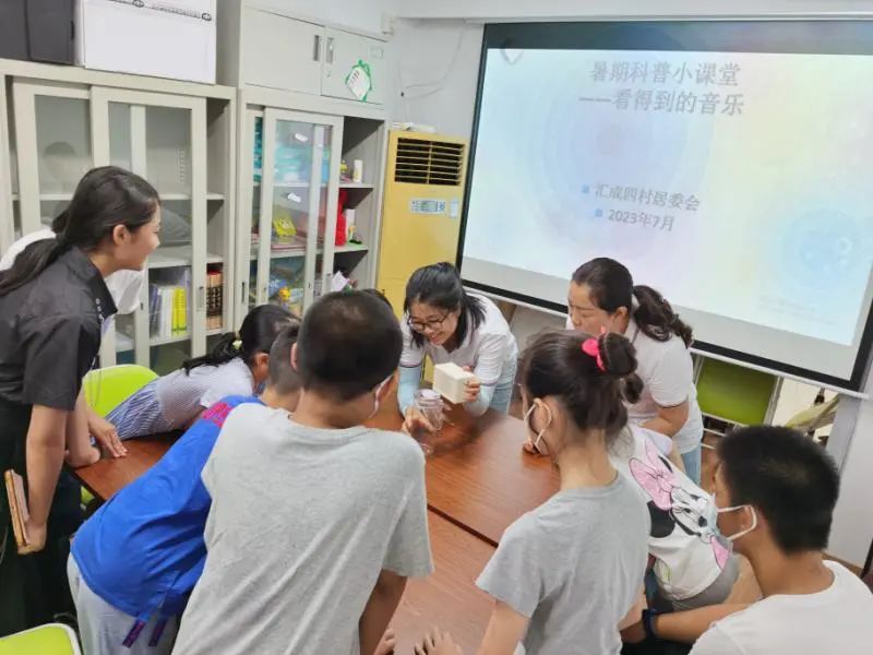 汇成四村居委会日前举办了“看得到的音乐”科普小课堂活动。准备好一个空罐头、一些细盐、一个小音响,居委工作人员在罐头的顶部均匀撒上细盐,打开音响,细盐通过音频快乐地跳跃,酷炫的音乐让细盐呈现各种图案。孩子们跃跃欲试,每个人都亲自尝试了一下。