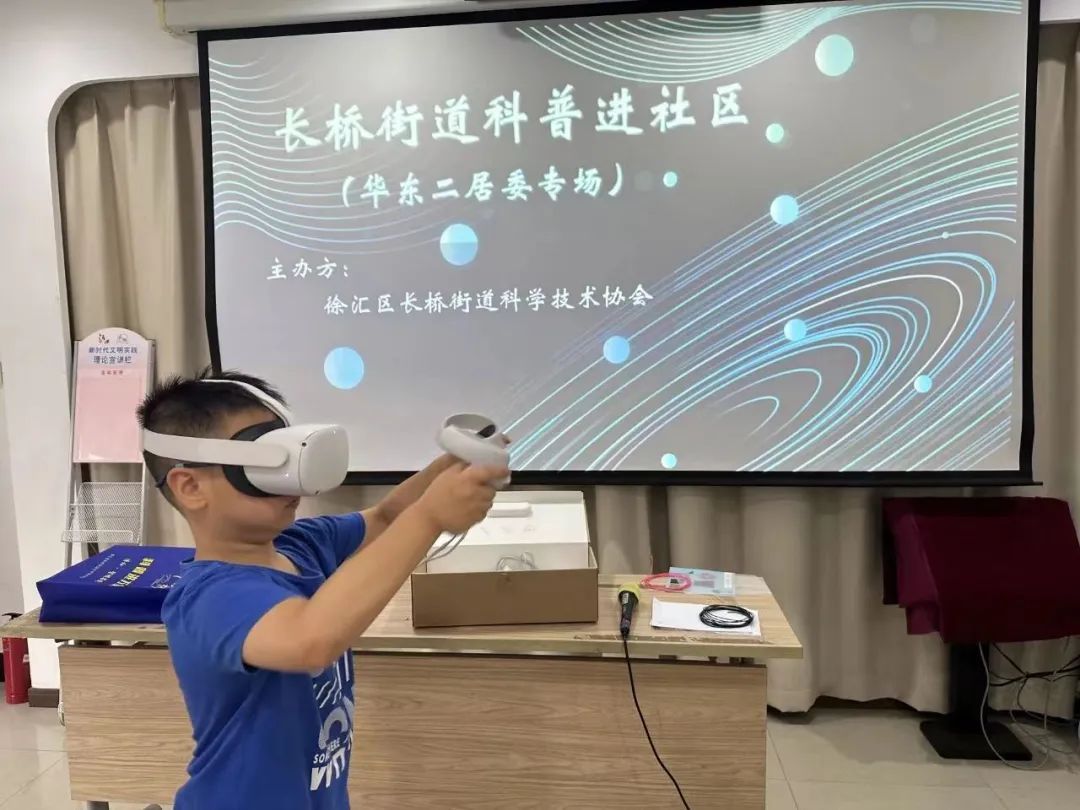 园南一村居委、长三二居委、光华居委在街道的支持下开展了VR体验会活动。通过各种虚拟现实游戏和体验项目,让家长和孩子能身临其境地感受到不同的场景和体验。尤其是家长们,他们有机会进入自己孩子的世界,一同参与到他们的游戏中。