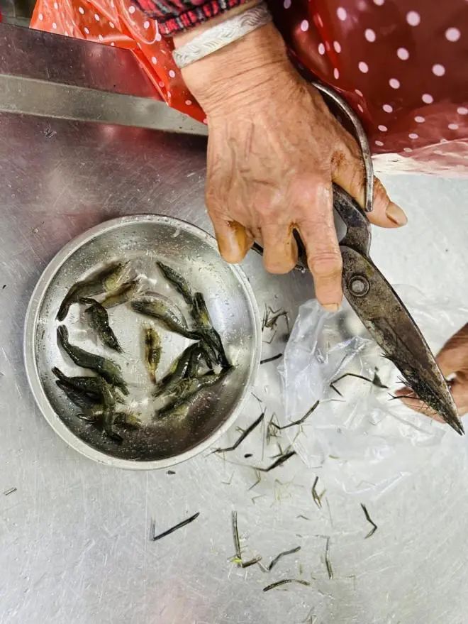 ► 2、河虾剪去脚爪须。