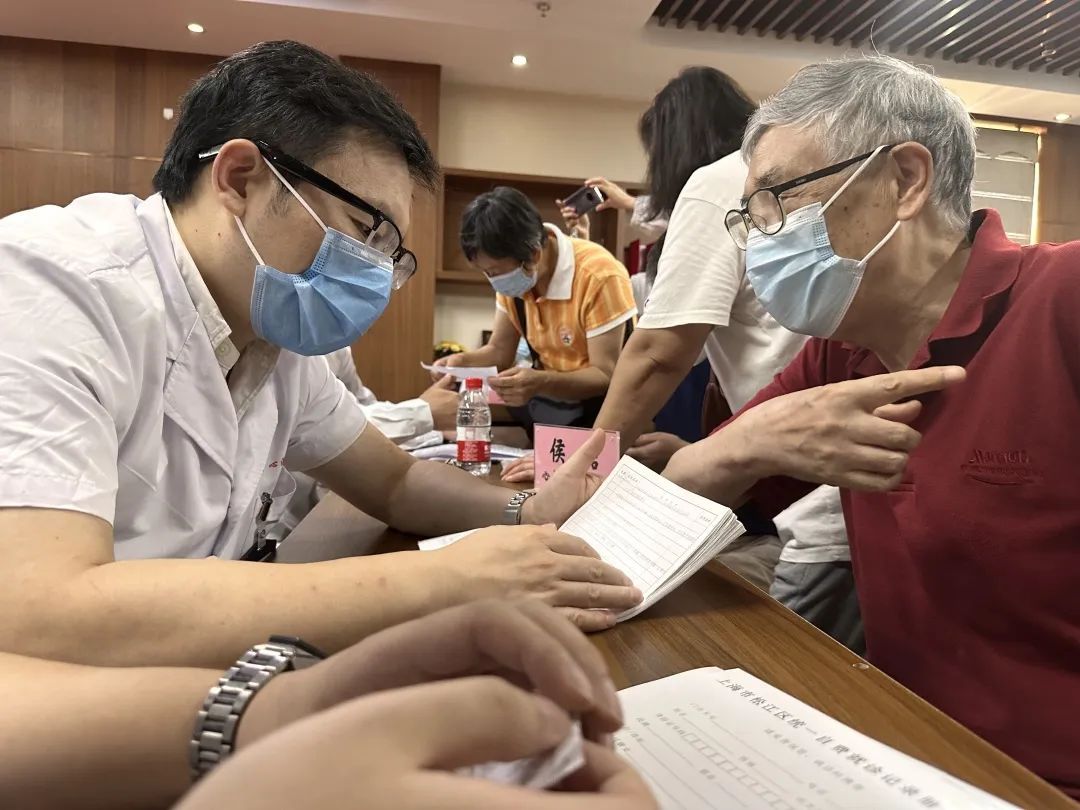 义诊现场气氛热烈,前来咨询和诊疗的居民络绎不绝。有不少居民带着化验单、体检报告前来咨询,专家们耐心细致地检查、分析病情,并针对不同病症和个体差异给予个性化诊疗方案。