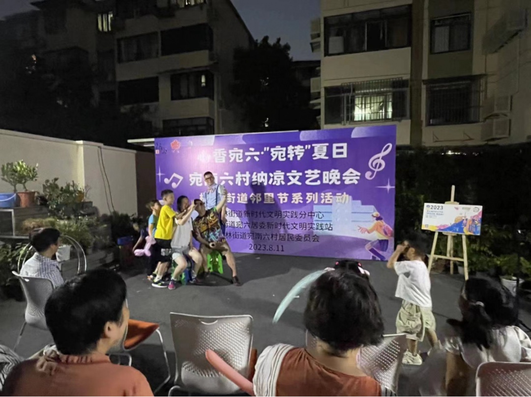 8月11日18点,在宛南六村31号乙有一场精彩的心香宛六·“宛转”夏日宛南六村纳凉文艺晚会,表演者们来自上海青年马戏团,吸引了社区居民前来观看欣赏。