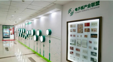 电子纸创新应用沉浸式交互体验馆,位于上海长江软件园内,占地300平方米,分为电子纸产业创新足迹长廊、智慧零售馆、智慧医疗馆、智慧教育馆、智慧办公馆、智慧交通馆、智慧民航馆、智慧工业馆、智慧物流馆、个人消费类体验区、联盟Logo墙、休闲交流茶室12个区域。