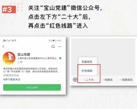宝山各级党组织可通过“宝山区红色线路”二维码、微信小程序或“宝山党建”微信公众号进行线上预约。