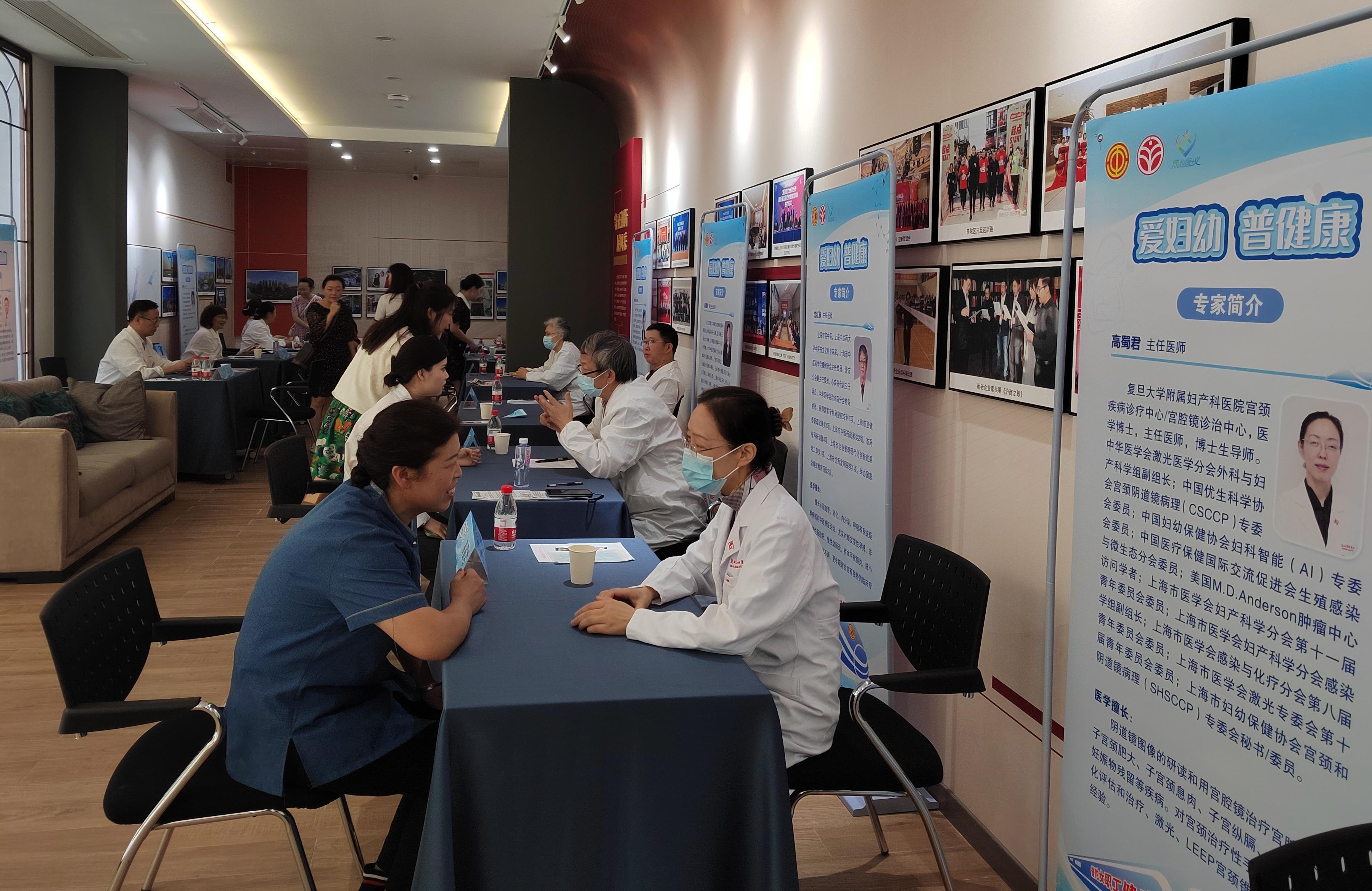 义诊区里,宫颈科、儿科、乳腺科、心内科、中医科等义诊台前咨询者络绎不绝,来自市胸科医院、红房子妇产科医院和普陀区中心医院、普陀区妇婴保健院的10名专家现场坐珍,为女性朋友答疑解惑。据悉,此次义诊是“爱妇幼 普健康”女职工健康直通车“停靠”的最后一站。