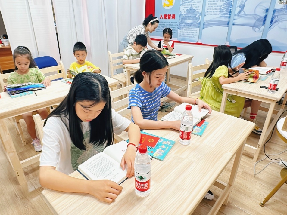 在“径舟书阁”启动仪式上,居委干部向社区小朋友代表介绍了“径舟书阁”的基本情况,希望大家充分利用“家门口”的读书角,养成良好的阅读习惯,以书会友、结交新朋友。