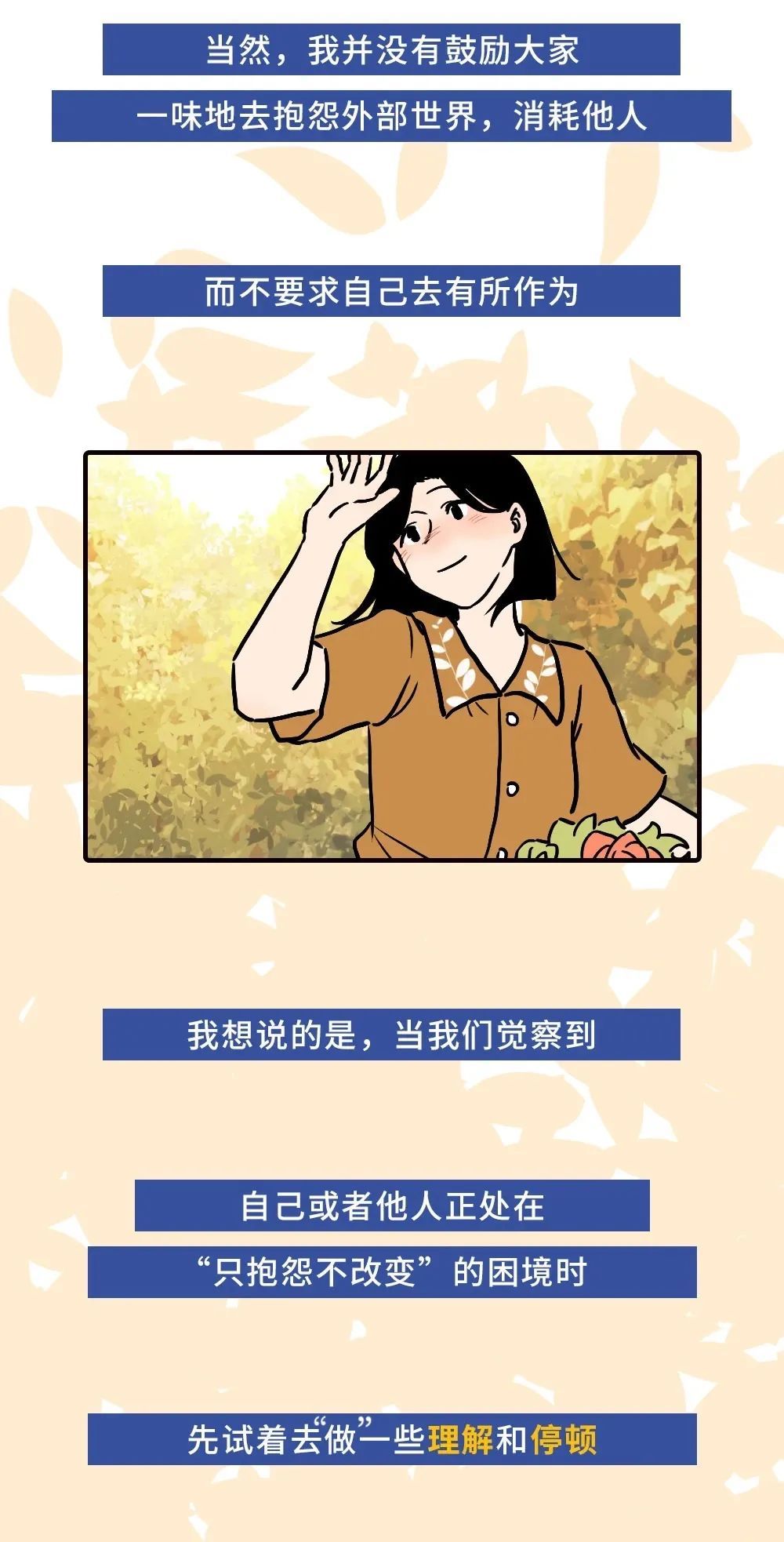 让我们先去理解这种需要,允许自己在某一阶段“只抱怨不改变”,反而能节省一些能量,迎来一些新的可能❤️