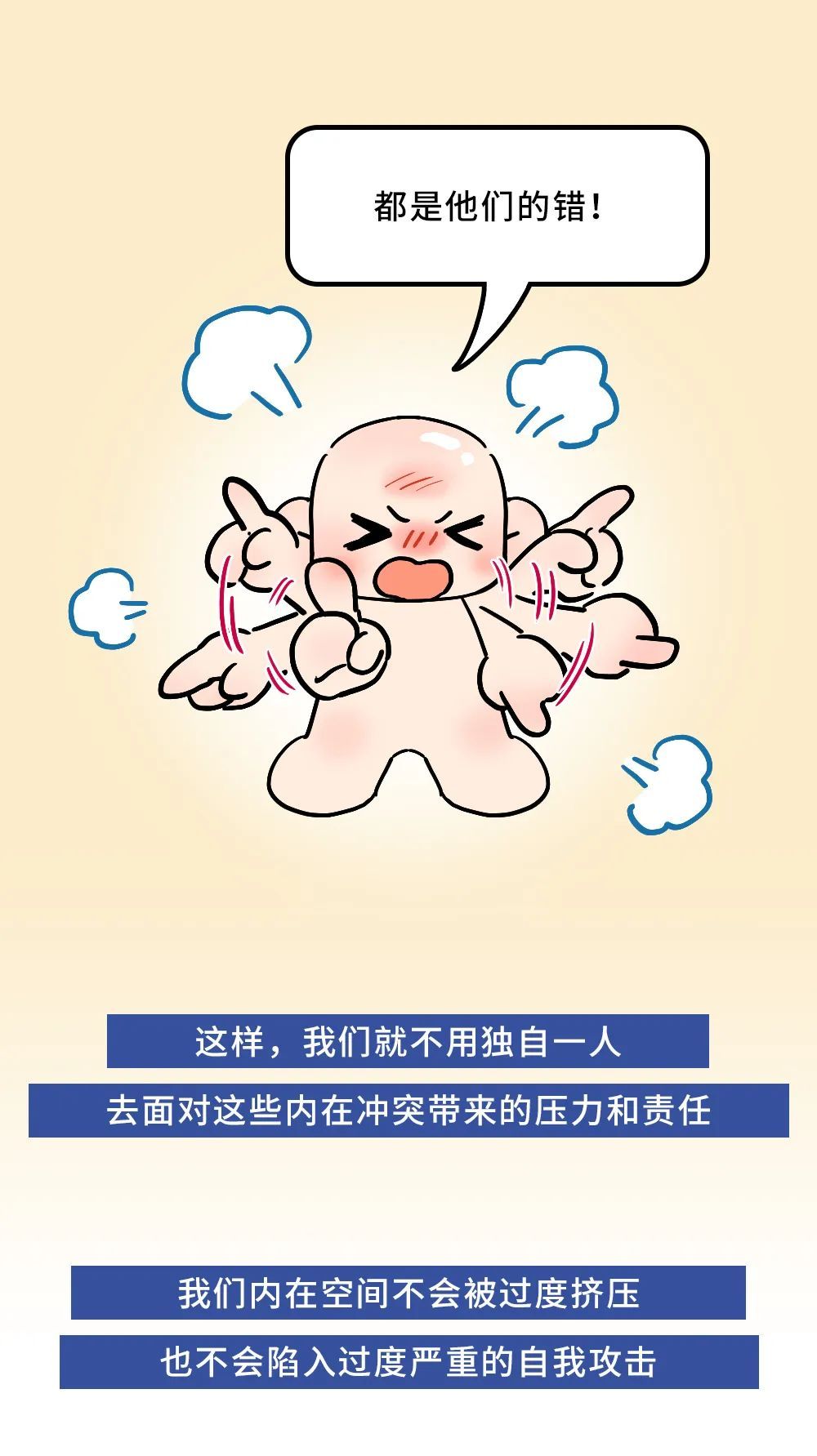 当我们遇到更大的痛苦,自己无法解决的时候,就可以把问题算到这个负面因素身上,让它来“背锅”,让自己好受一点。