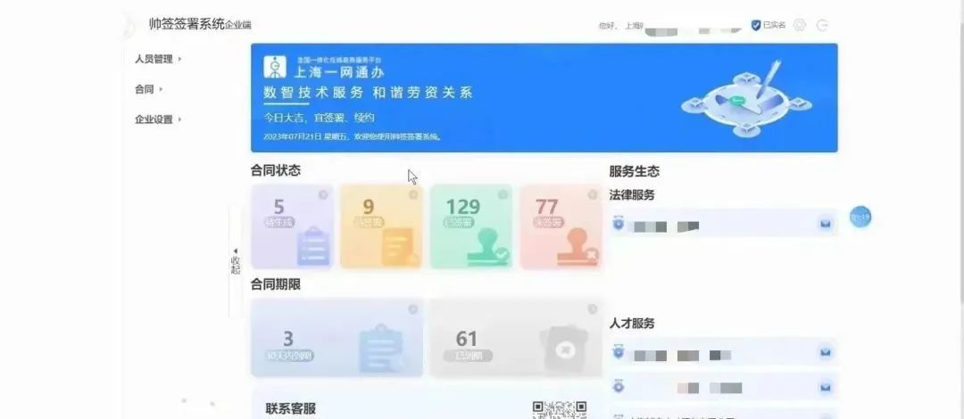 近日,“一网通办”金山频道电脑端、“随申办”金山区旗舰店移动端两端联动正式上线“电子劳动合同服务”应用,这是金山区聚焦便民利企,优化劳动用工管理模式,提高用人企业人力资源管理效率,持续优化营商环境的又一重要举措。