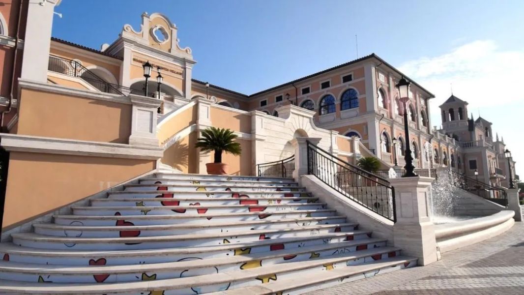 位于小镇二期的西班牙阶梯是一个“网红打卡点”,台阶所用石材均从意大利进口,有独特的花纹,并且它还是防滑的石材,保障了大客流时的安全。而与阶梯在一处的喷泉也是仿照罗马许愿池制作而成,每到情人节等节日时,能看到许多情侣在此游玩。