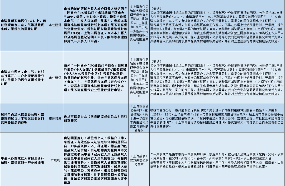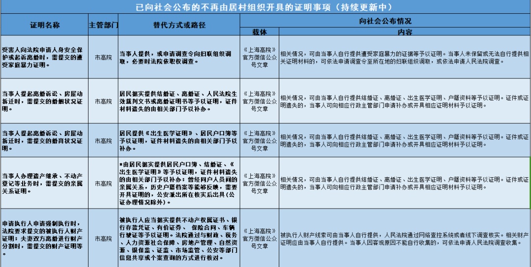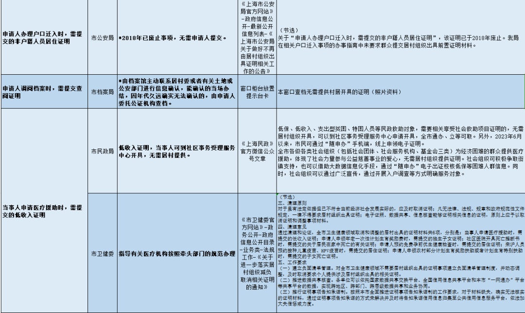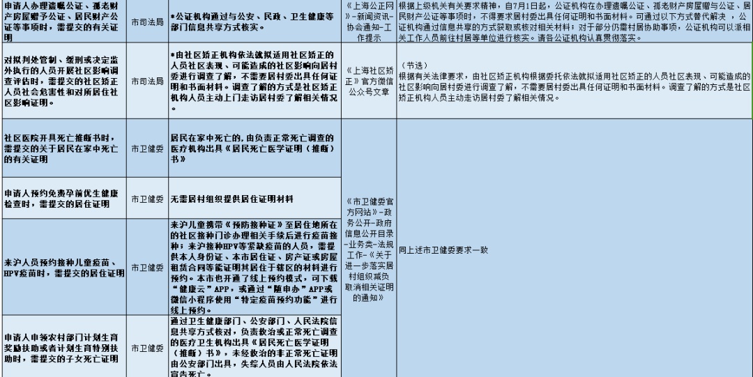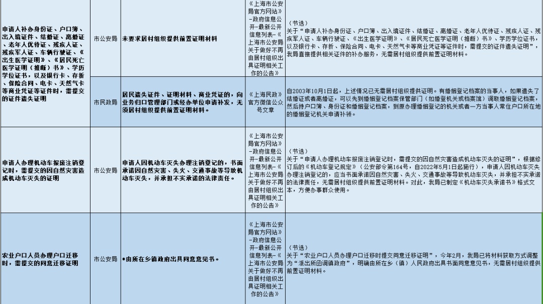近期,金山区民政局收集汇总了市、区两级已向社会公布的不再由居村组织开具证明事项(后续将根据相关部门工作进展持续更新),一起来看看吧!
