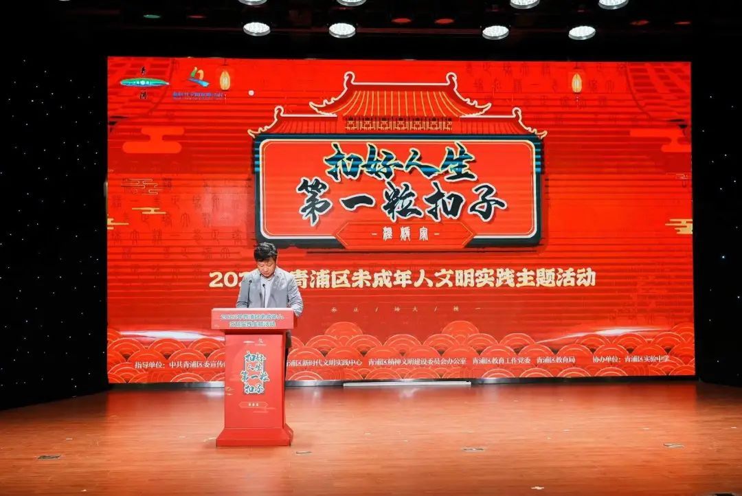 青少年是祖国的未来、民族的希望,是优秀传统文化教育传承和创新发展的生力军。为深化立德树人根本原则,引导广大未成年人汲取中华民族优秀传统文化中积极的思想观念、人文精神和传统美德,增强文化自觉、坚定文化自信。昨天(8月27日)下午,由青浦区新时代文明实践中心、区文明办、区教育工作党委、区教育局、浦江学堂联合主办的“扣好人生第一粒扣子”2023年青浦区未成年人文明实践主题活动在青浦区实验中学举行。青浦区委常委、宣传部部长陈建国出席活动并讲话。