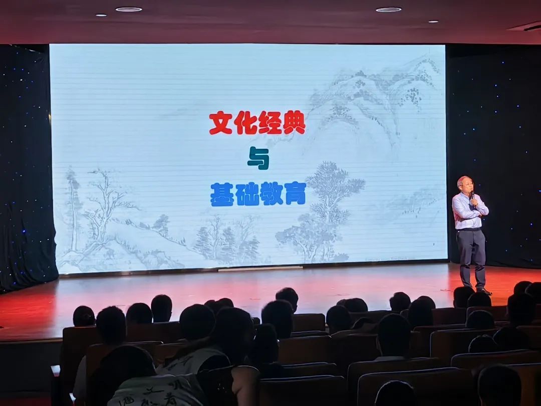 活动现场,《百家讲坛》鲍鹏山教授为大家带来《传统经典与青少年教育》微讲座,针对浦江学堂独特的“3+2+N”学制进行了讲解,通过对人的素质问题的探寻,结合儒家传统知识,详细解读中国传统文化的精髓,帮助广大青少年树立正确的人生观、价值观和世界观。随后,师生们共同欣赏了由文明实践特色阵地松涛剧场带来的相声剧《子曰》,通过相声艺术的形式,回顾了孔子的一生,帮助孩子们学习中华传统文化,弘扬文明新风,担当文化使命。