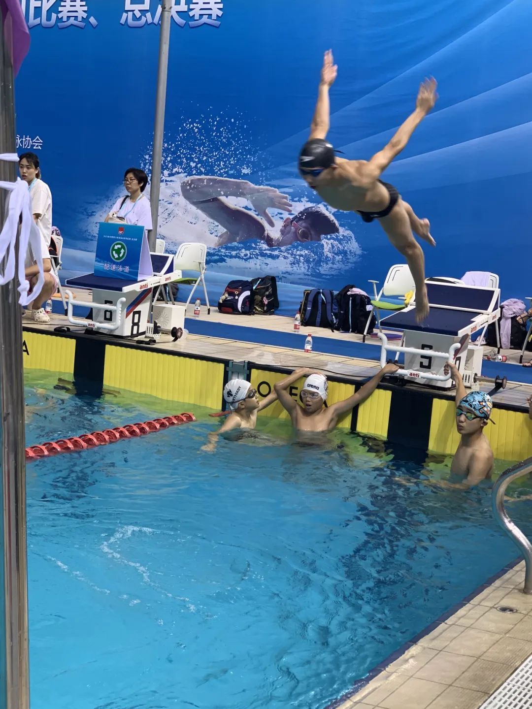 近日,全国青少年游泳U系列总决赛在广西南宁举行,由宝山区少年儿童业余游泳学校牵头行知游泳俱乐部、吴淞中学共同组队的16名运动员参加了本次全国游泳总决赛比赛。经过2天的拼搏、良好的发挥,宝山代表队共斩获了3金、2银、3铜的好成绩!