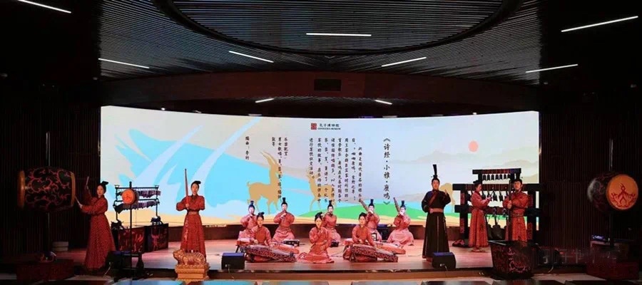 近日,曲阜孔子博物馆萧韶乐团,多位90后乐师身着礼服,演奏中国古老的传统乐器,再现了2000多年前周天子宴请宾客时所演奏的“登歌”雅乐——《鹿鸣》。“呦呦鹿鸣,食野之苹,我有嘉宾,鼓瑟吹笙”得以重现,千年之前的音律在新时代年轻人的指尖焕发出新的生机。