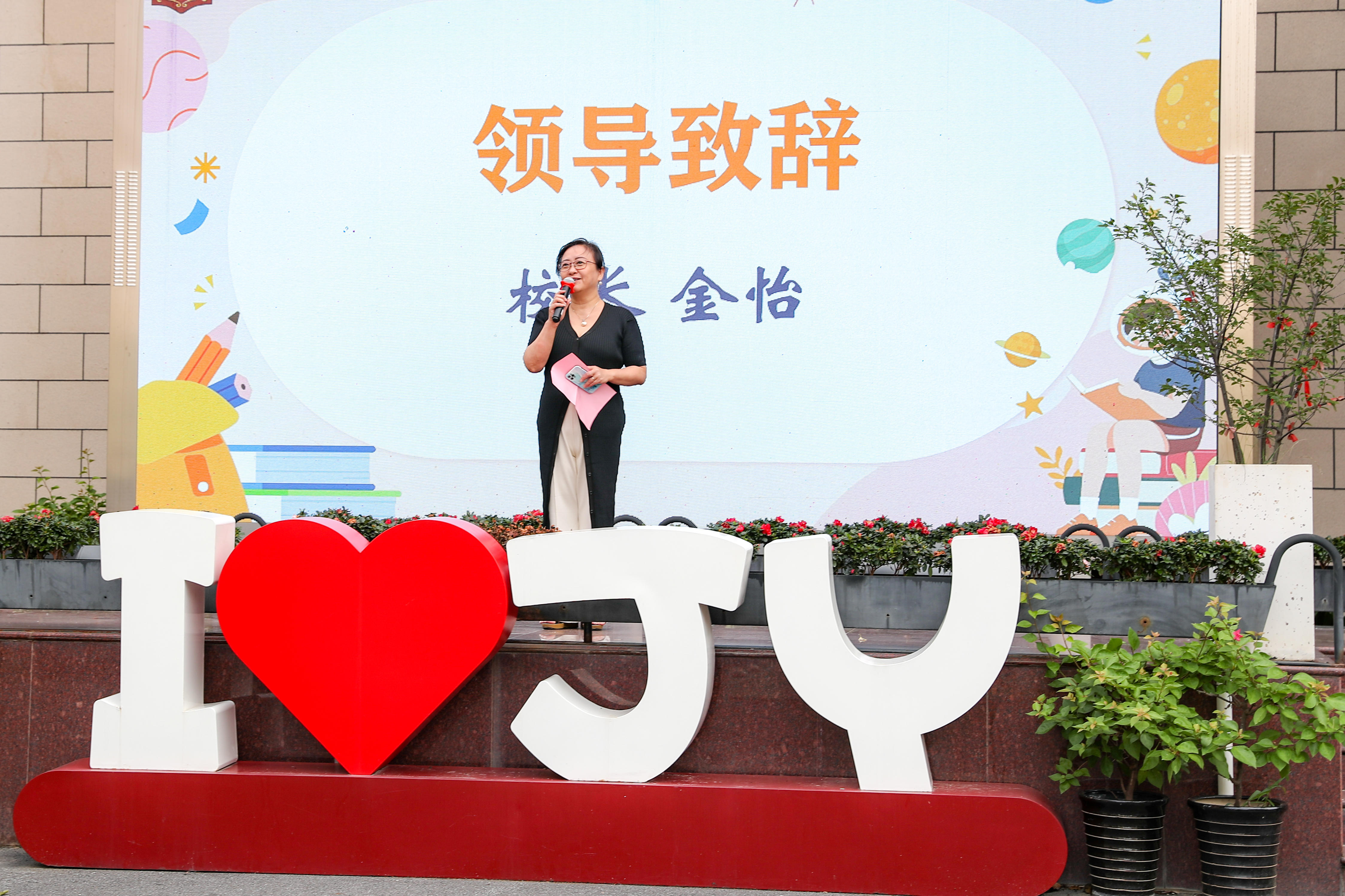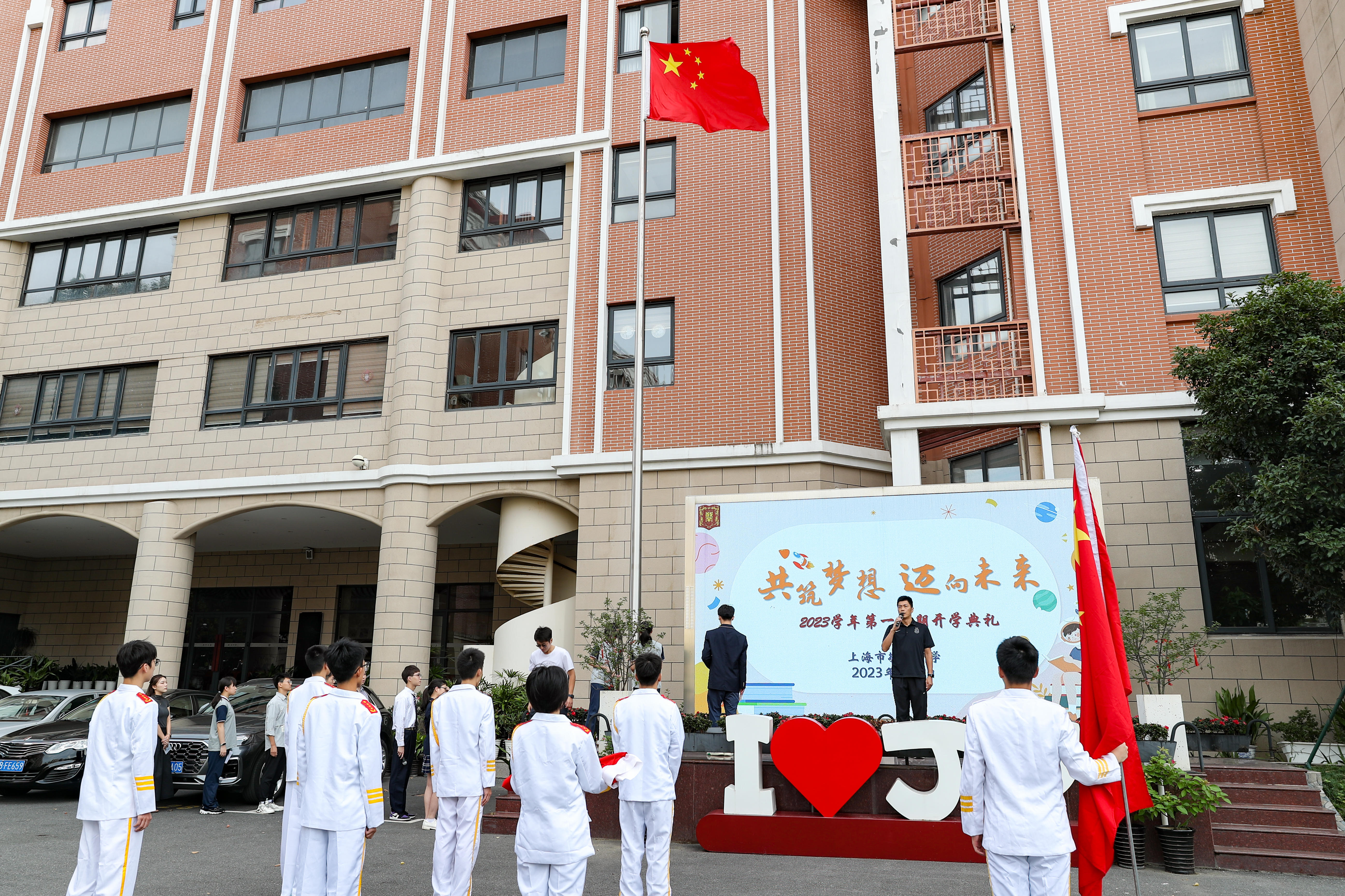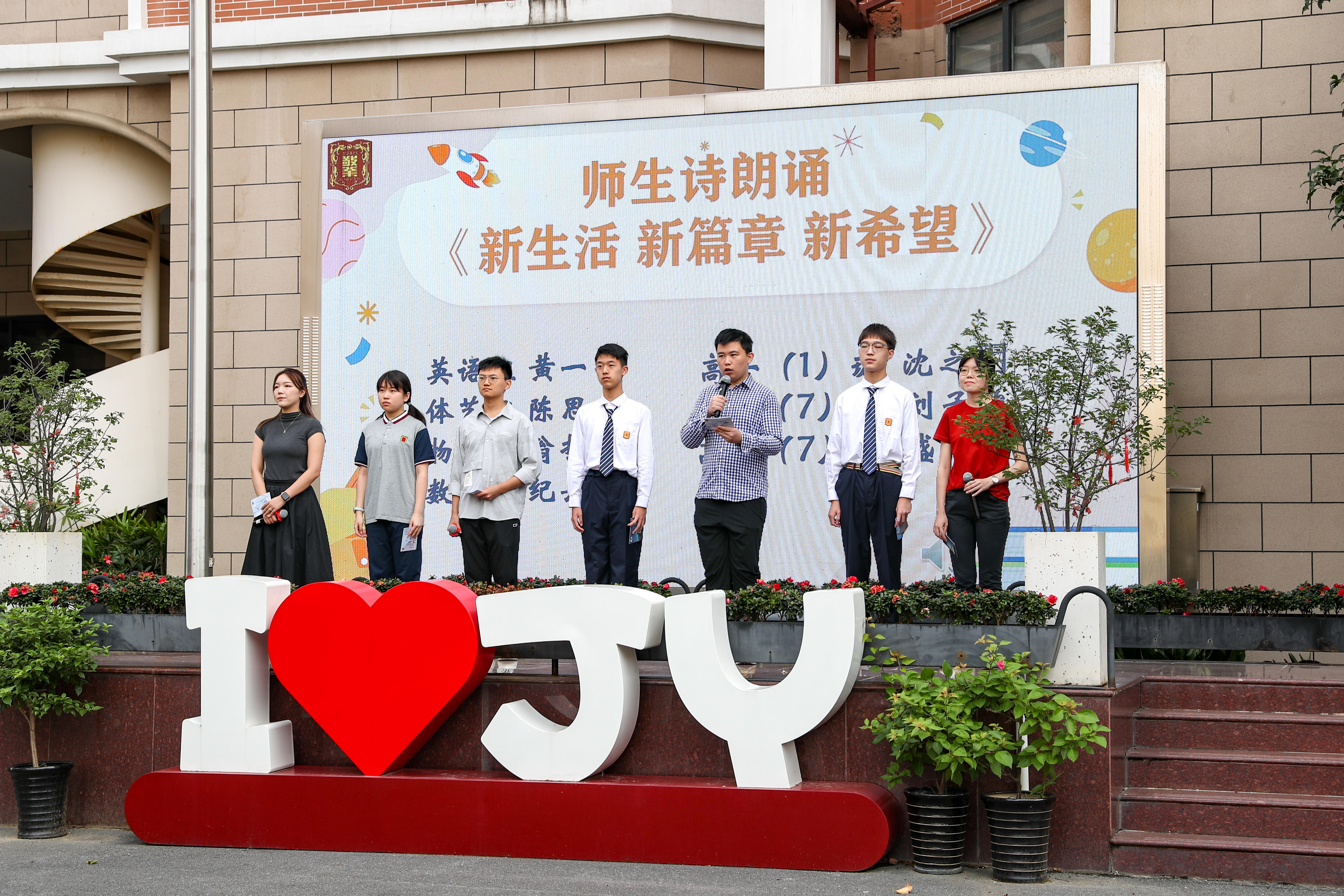 在主题为“新起点 新气象”的开学升旗仪式上,同学和老师们从关键词“新”出发,以诗朗诵的形式,表达了对新学期的畅想。校长金怡最后致辞,她鼓励学生们为自己的梦想努力,学会深度思考、深度学习,培养正确的价值观和健康的人格品质。