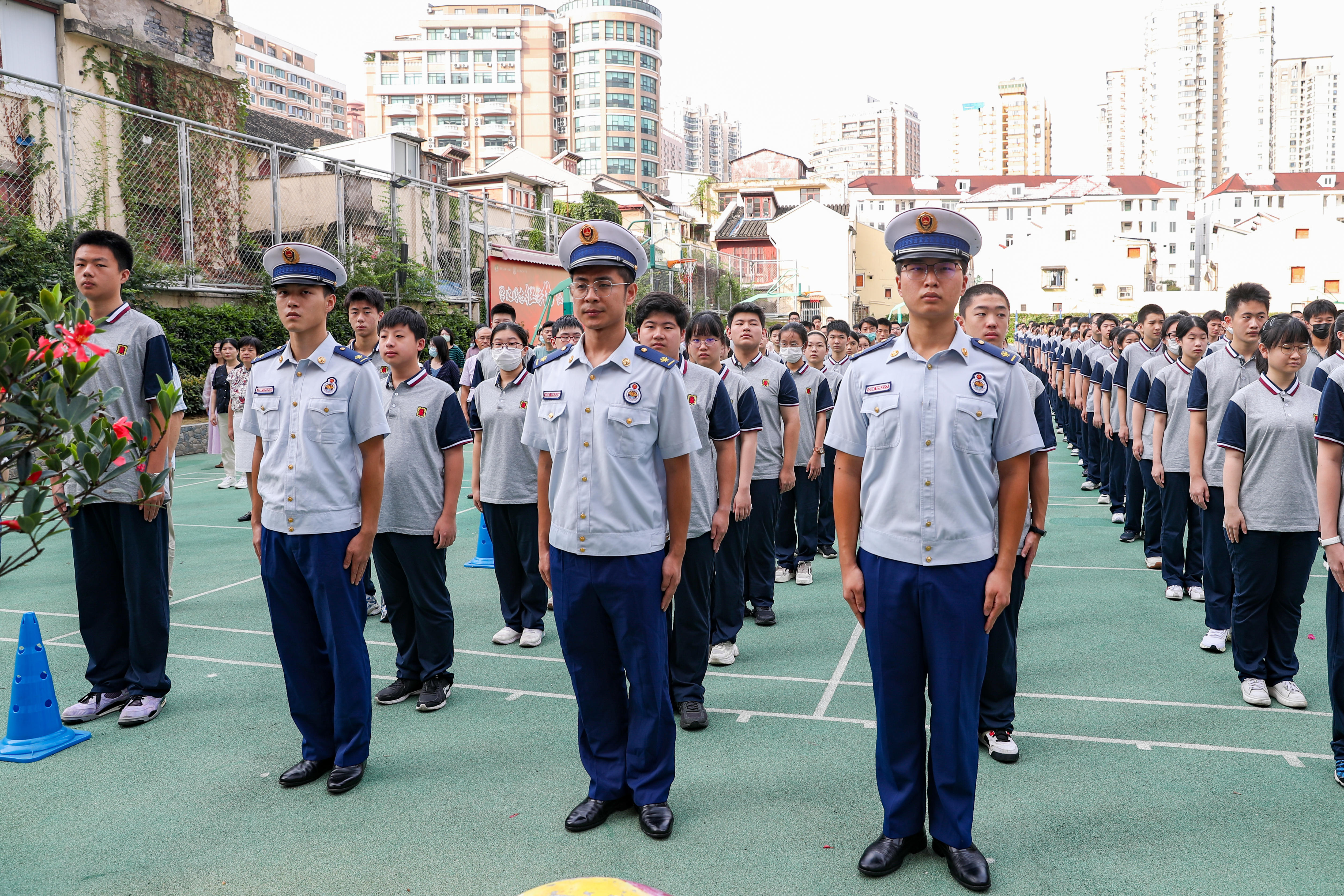 由敬业中学青年教师团队辅导的三位考进军校的复兴消防站消防员,在去军校报到之前,也以学生身份一同参加了开学典礼。