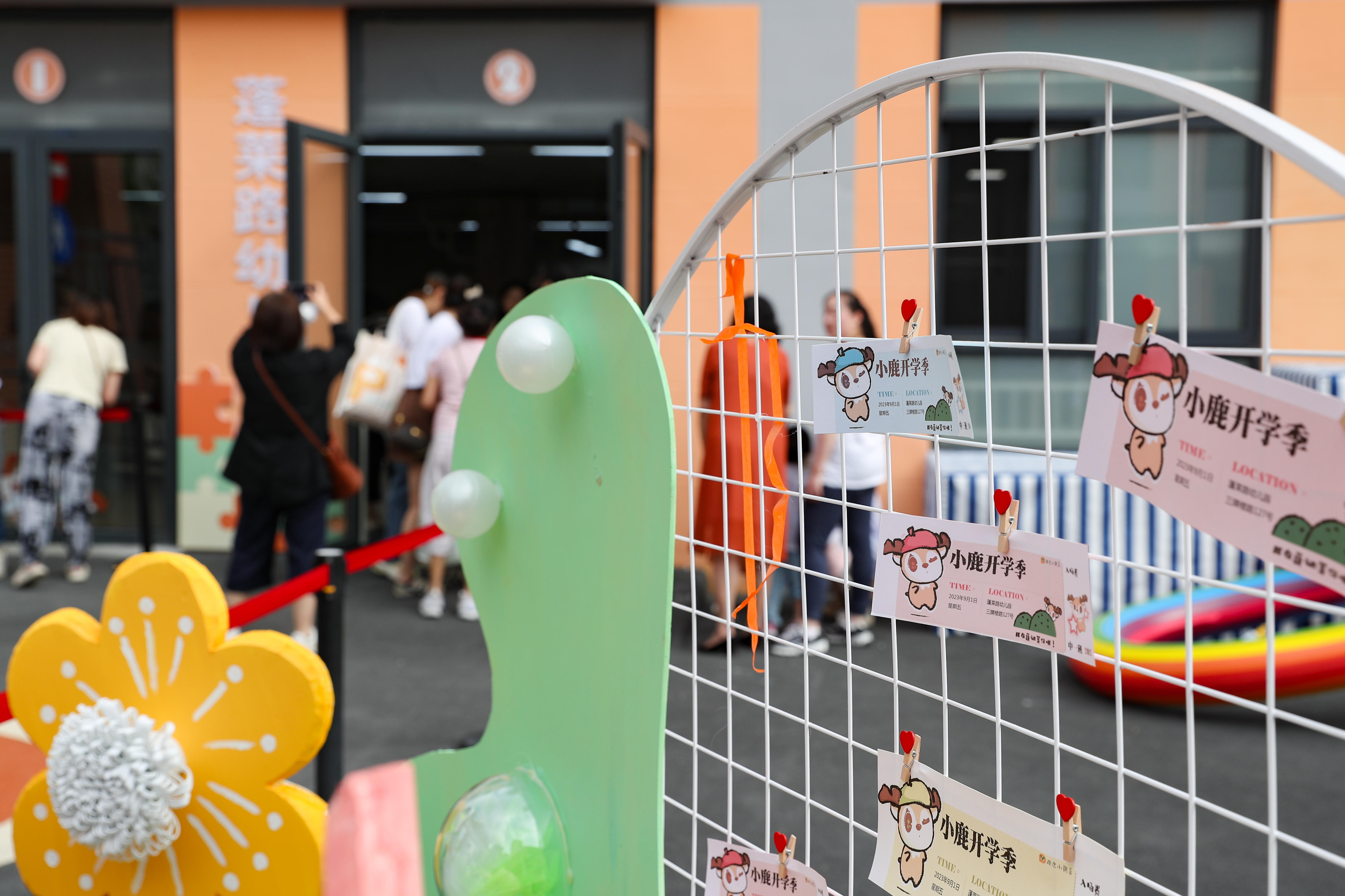 早上8时,在蓬莱路幼儿园,孩子们怀着兴奋和好奇之情,在家长的陪同下踏入幼儿园大门,开始了新学期的欢乐学习和成长之旅。
