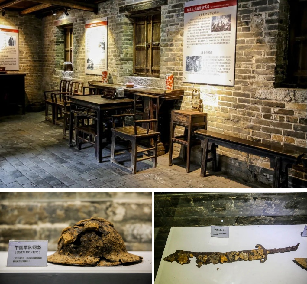 大战遗址公园遗物陈列馆里面陈列了台儿庄大战的抗战历史、抗战时期军人使用的武器装备等,一步一回顾,往昔岁月仿若近在眼前,看着无数英烈在中国人民抗日战争史上留下英勇悲壮的一页,深植我们浓烈的爱国情怀。瞻仰战争遗址,追忆峥嵘岁月,无不激励着后人砥砺前行。