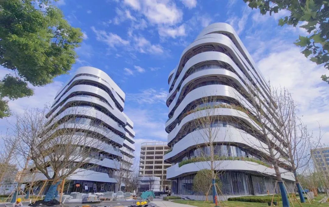 记者在位于鹤旋东路的MAX科技园(上海·虹桥)项目现场看到,两栋研发办公总部大楼的弧形外立面已完整呈现,工人在进行内部装修和绿化工作。