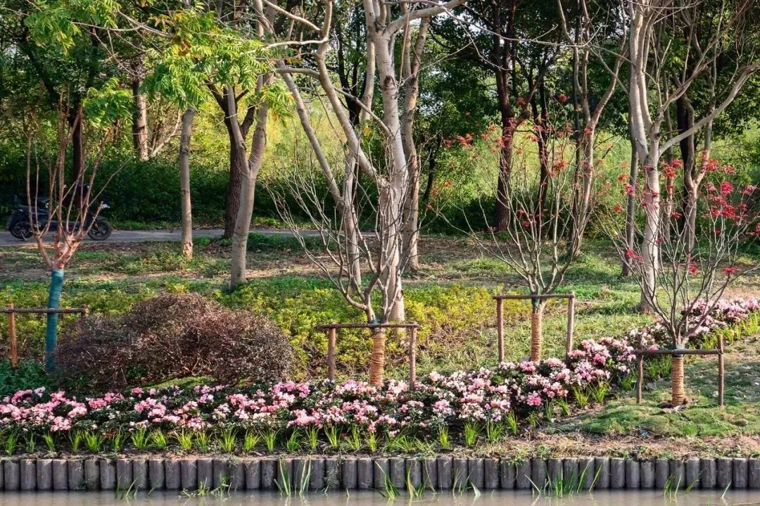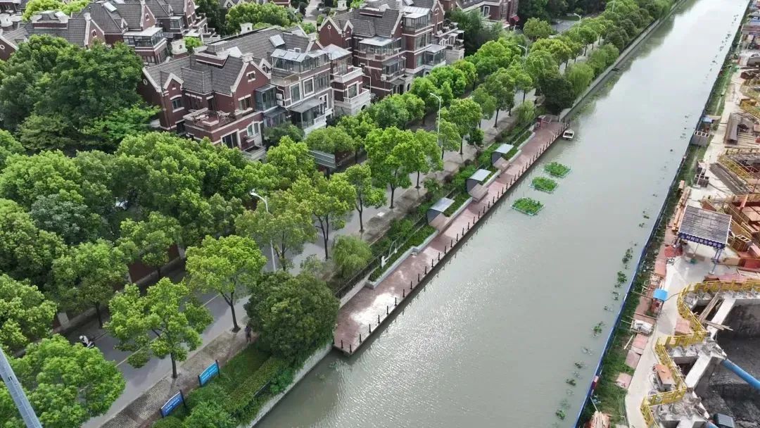 该项目通过亲水平台改造、水生态修复、新建护栏、景观节点改造等方式,以提升河道整体面貌为目标,着重进行景点改造,并优化绿化品种配置,改良土壤;以人文景观为抓手,打通堵点节点,布点布景,开放河道岸线,增加河道水文化氛围;以优化人居环境为切入点,结合美丽乡村建设,提升河道精细化养护管理,提高河道水景观效果,体现人水和谐效益。如今河道两岸绿化高低错落、色彩丰富、水清河畅,已成为周边居民休闲好去处。