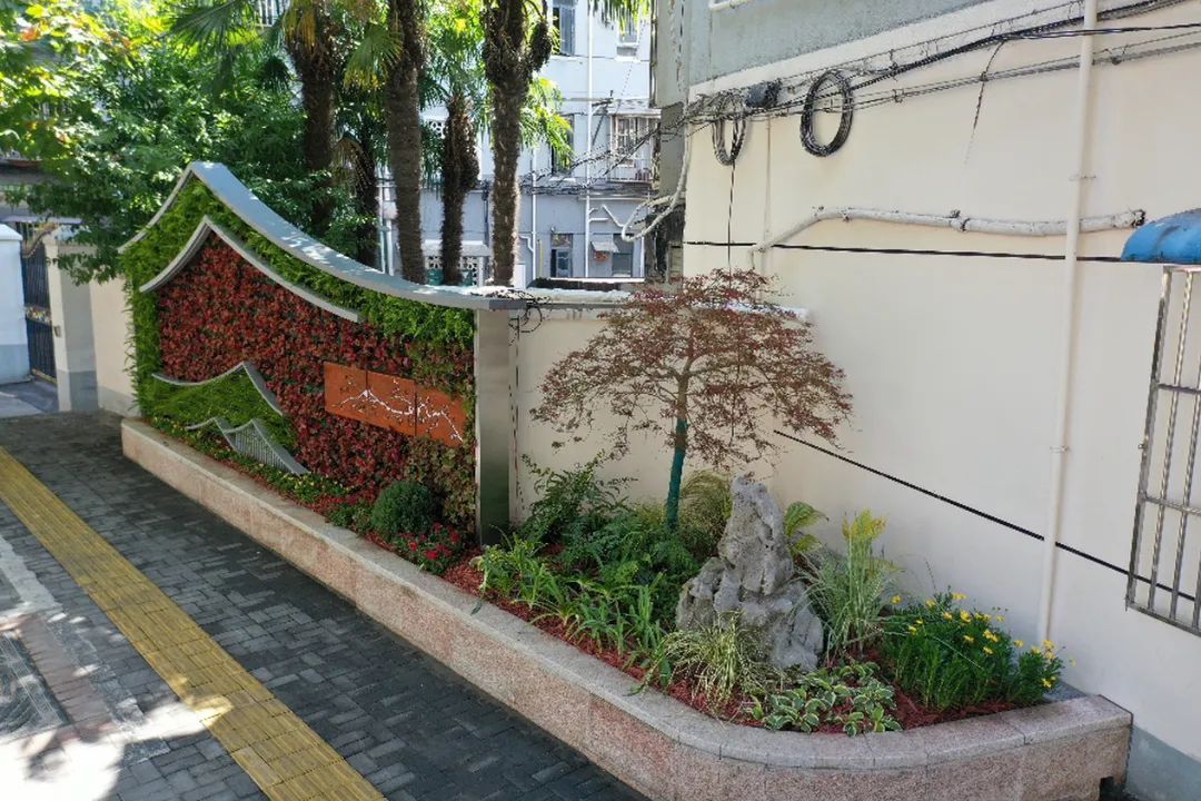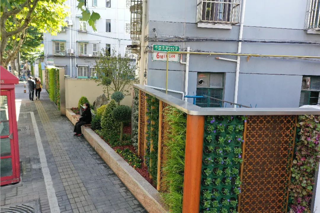 平型关路(洛川路—柳营路)绿墙在新建花坛基础上沿街建设150平方米垂直绿墙,既打造了街区特色绿化,又解决了道路乱停车顽疾,用见缝插绿的建设形式让街区空间增添绿意,焕发新活力。