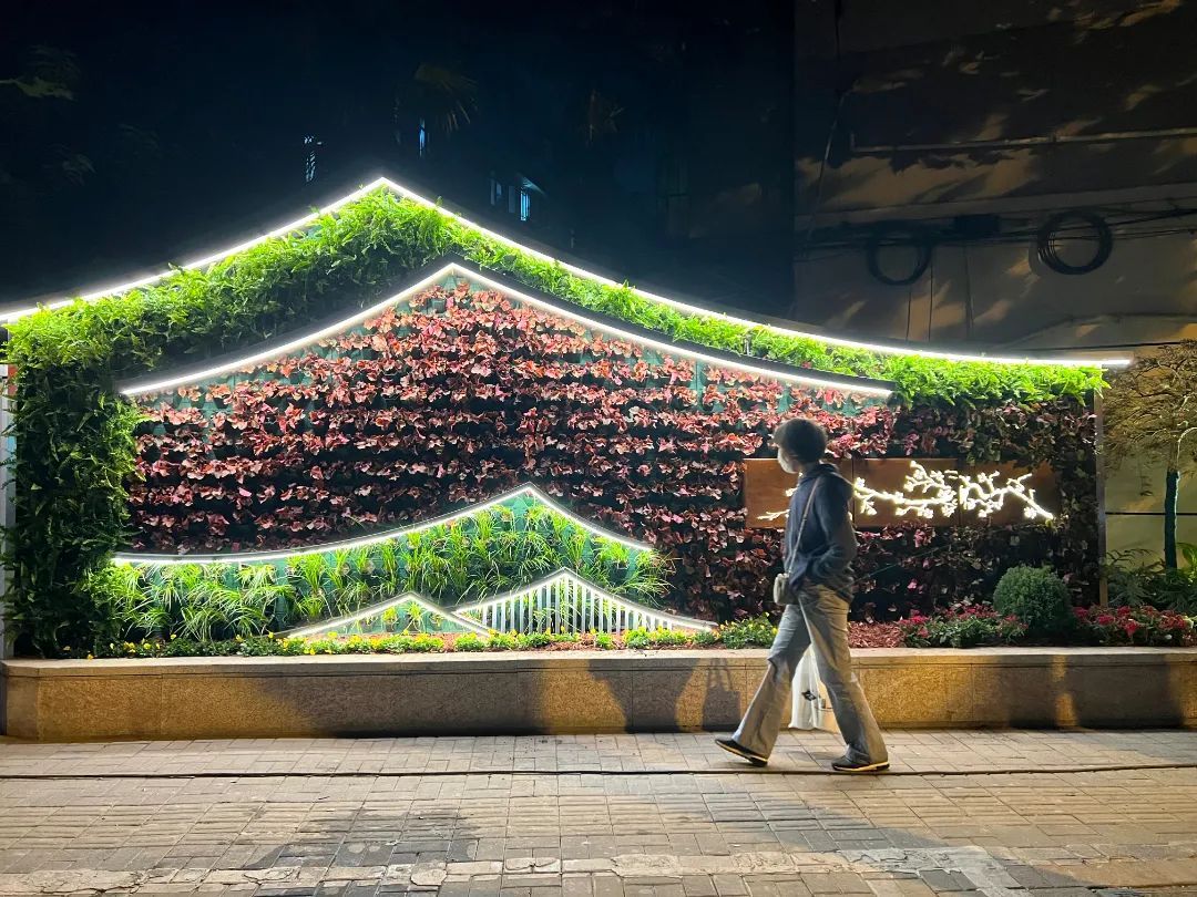 该处新建垂直绿墙220平方米,通过垂直绿化建设柔化建筑墙体,丰富自然肌理。