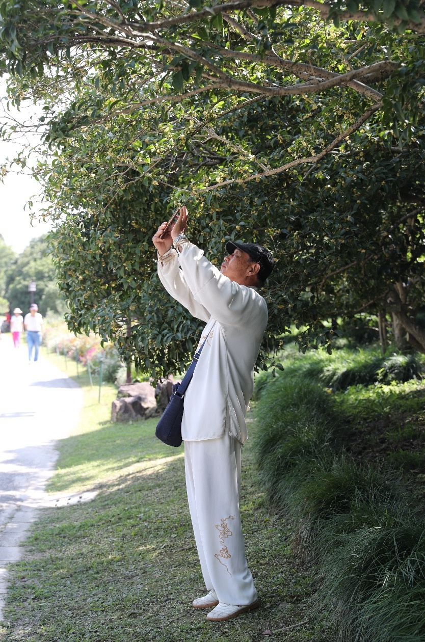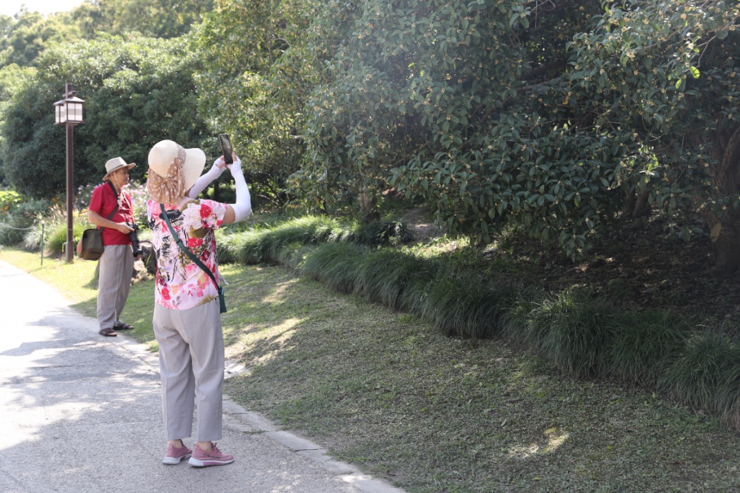 “马上就到农历八月份了,桂花盛开的季节,今天我特地过来看看。果然,这桂花一开,特别漂亮!”居民王阿伯指着桂花树告诉记者,上海植物园的桂花园很有名气,银桂、金桂、丹桂、四季桂四大品种群都有,“再过几天香气会更厉害!”