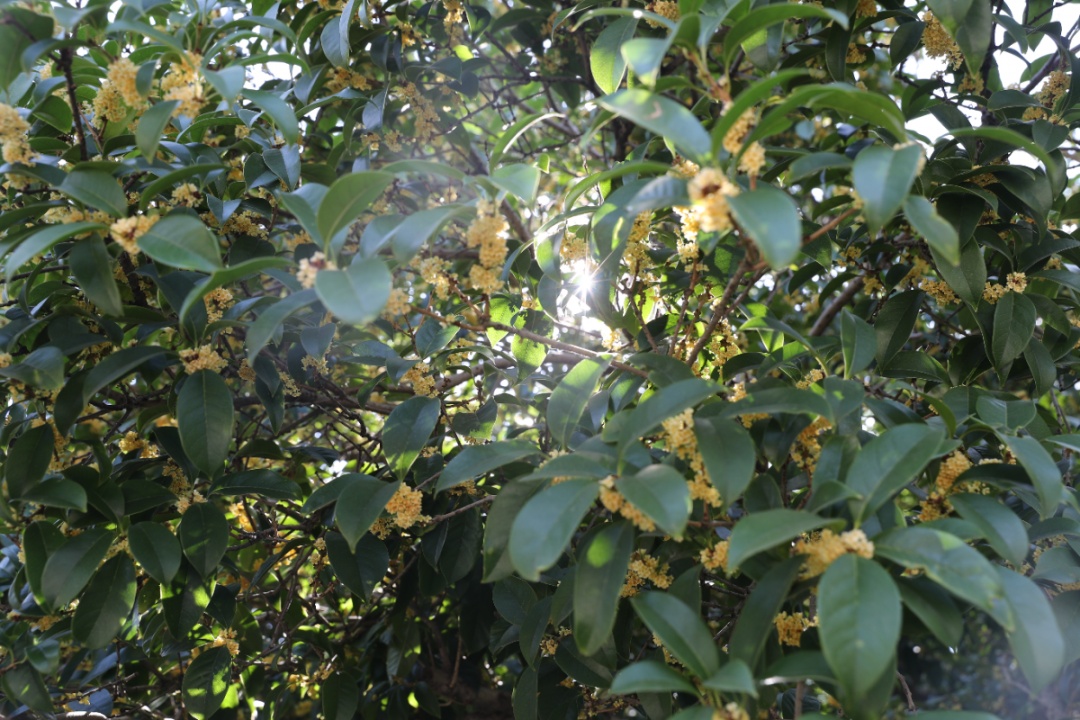 微风吹过,送来桂花独有的阵阵香气,甜而不腻,让人忍不住深呼吸,沉醉其中。路过的居民游客都被这花香吸引,他们驻足欣赏桂花树,有的还拿出手机,拍下这一季的秋色。