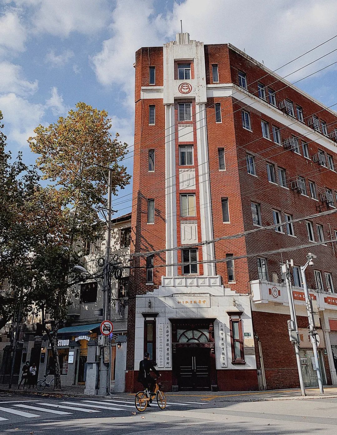 “南昌大楼”于1933年建成在当时的环龙路,故旧名又称“环龙公寓”。大楼黄绿相间的外墙虽已染上了岁月的痕迹,但依然能看出昔日的贵气,登上大楼,在楼顶可以俯瞰马路对面的石库门建筑淮海坊。