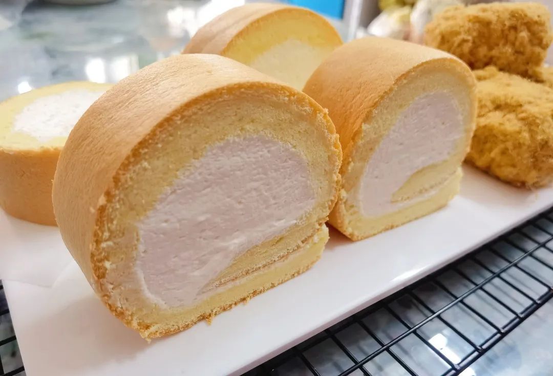 步骤8:借助擀面杖向前卷起,直至整片蛋糕卷制完成。