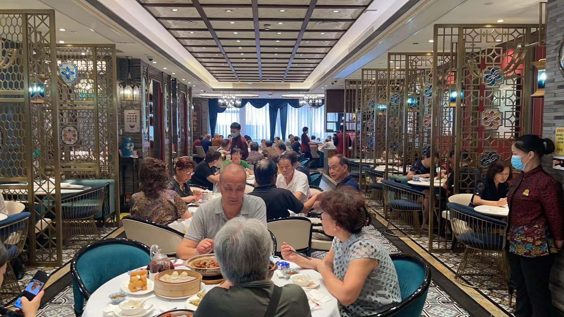 据介绍,由于国庆长假期间外地游客增多,每日清晨便有不少游客前来新雅,排队等待早上7点半喝早茶;晚市同样如此,食客们早早来到大堂,等待餐厅开放。