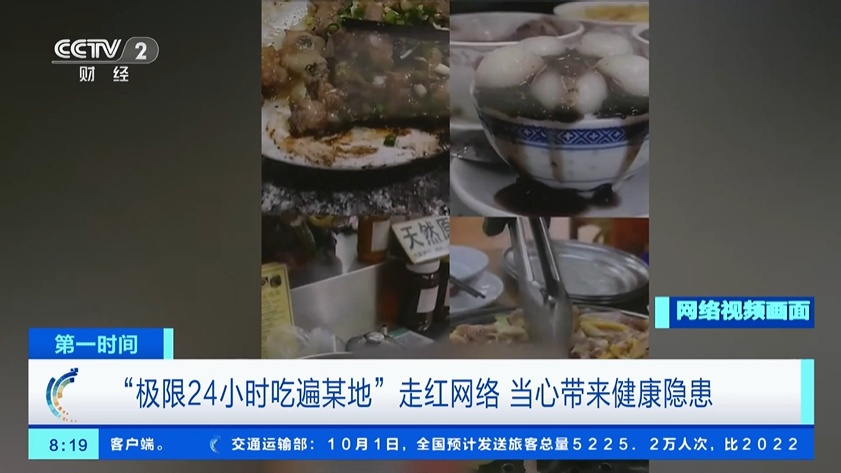 中秋国庆假期,一个名叫“极限24小时吃遍某座城市”的挑战,突然在社交媒体上火热起来,看起来挺好玩,但是医生提醒,这种极限饮食打卡,可能会给身体带来伤害。